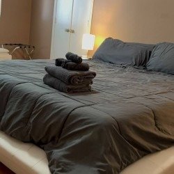 - Clean linens, towels, paper products, and cleaning supplies provided