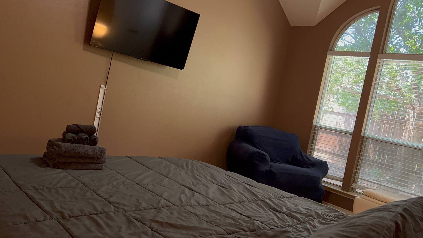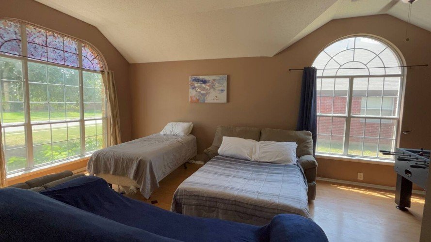 Welcome to Savvy Stays Lake Dallas, a spacious, fully furnished entire home rental in Lake Dallas, Texas, designed for comfort, flexibility, and group stays. This single-story home offers 4 private bedrooms plus a versatile efficiency room, making it ideal for families, corporate travelers, travel nurses, relocations, and extended stays. Located minutes from major highways, local parks, and Denton County attractions, this home combines convenience, privacy, and modern amenities—all in a quiet residential neighborhood. The Space This thoughtfully designed home comfortably accommodates large groups with 8+ sleeping options, multiple living areas, and smart entertainment throughout.Sleeping Arrangements