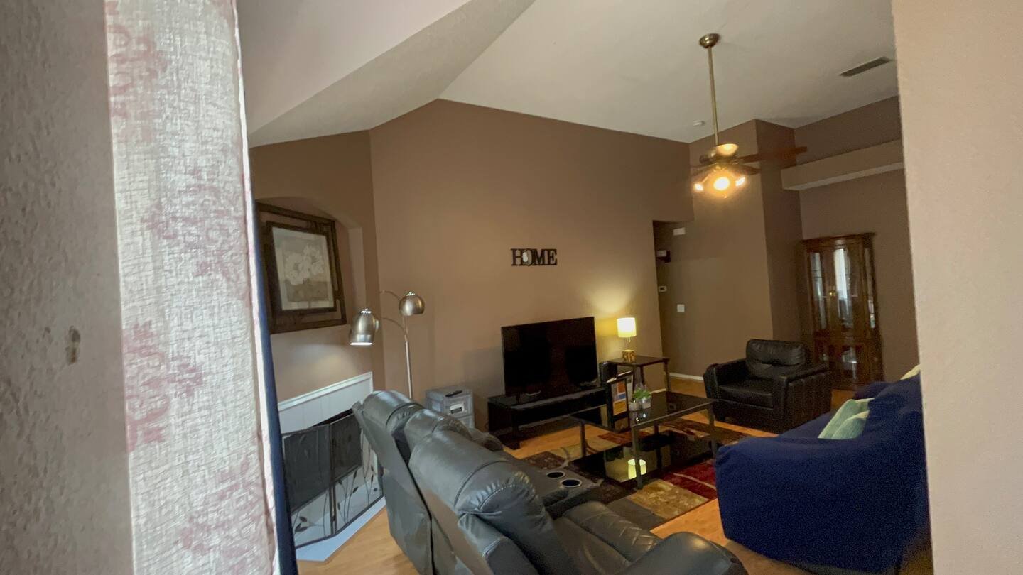 - Spacious living room with 60” Smart TV